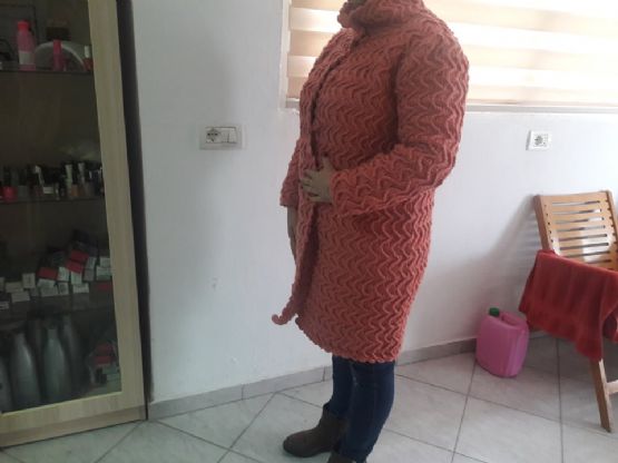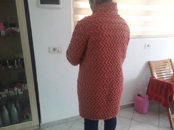 E gjithë xhaketa është e realizuar me dorë, me grep nga fije akrilik.