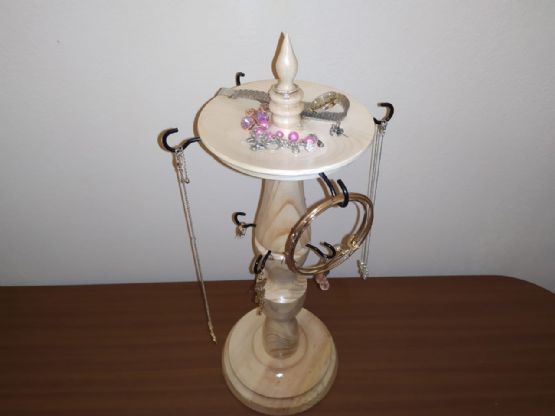 Mbajtese per bizhuteri materjal druri te punuara ne torrno ne menyre artizanale.Sherbejne per te varur varset unazat byrzylyket si dhe orat. Eshte shum e pershtateshme per komodinat ose afer pasqyres ku mund ti vendosni aksesoret e zbukurimit te gjitha ne nje vend .