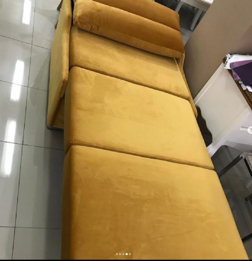 Një kolltuk të verdh që mund të shndërrohet në krevat