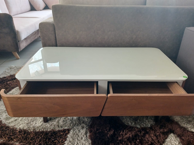 ◼️ Këmbët me material dru dhe suprina ësht xham I temperuar