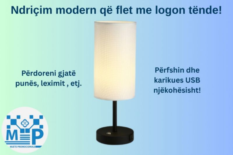 Promovoni markën tuaj me një llambë tavoline premium me logo, karikues wireless dhe dritë të butë LED. Shkruani tani për ofertë!