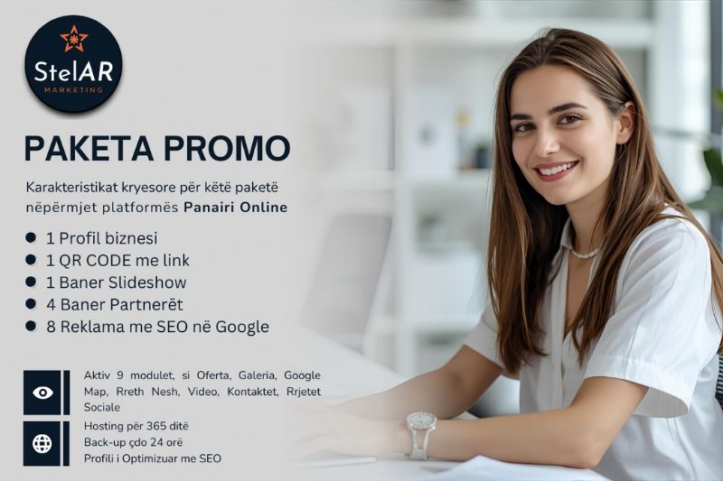 🎯 Shembull se si mund të duket biznesi juaj në platformën Panairi Online me Paketën PROMO: