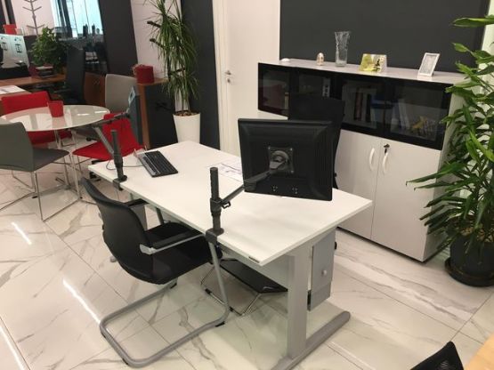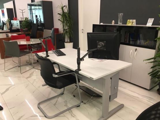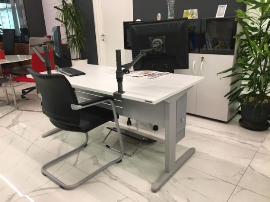 Tavoline e pershtatshme per zyra , ngjyre e bardhe me skelet metalik e cila mund te kombinohet nje njejten linje me bibliotekat , komodinen, tavoline mesi , tavoline mbledhje , tapa per kalim kabllo , mbajte hardisku , mbajtes per kembet , mbajtes monitori dhe spirale per kabllo. Ky model realizohet ne variante ngjyrash te ndryshme.