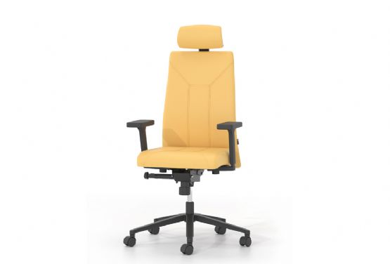 Karrige menaxheriale me një mbeshtetese te larte te perbere nga poliuretani.Baza e karriges me 5 yje është bërë prej alumini të derdhur, të lëmuar ose të veshur me pluhur (elektrostatike).Karrigia rregullohet lartësia përmes një sustë gazi.Në anën e pasme të mbështetëses ka një çelës për rregullimin e lakimit në zonën e mesit për një mbështetje më të mirë mesit.Mekanizmi i karriges është bërë prej alumini dhe çeliku i derdhur dhe është i disponueshëm në llojin e mëposhtëm:Mekanizmi synchro, që lejon lëvizjen e sinkronizuar të sediljes dhe mbështetëses, në pozicione 5 - mbyllëse. Mekanizmi është i pajisur me një funksion anti-panik për kthimin e qetë dhe të kontrolluar të mbështetëses në pozicionin normal dhe me rregullimin e forcës së kthimit dhe ekuilibrit, në varësi të peshës së përdoruesit.Ndenjesia eshte e perbërë nga poliamid i formuar dhe eshte e rregullueshme . (distanca 190-270 mm nga sedilja).