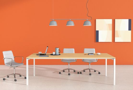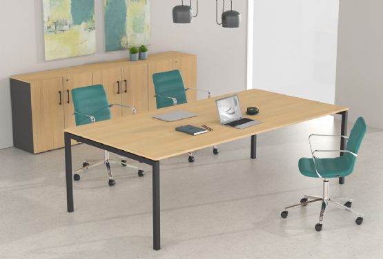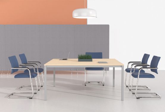 Seria e tavolinave TETRA dallohet për ergonominë, estetikën e lartë, çmimet konkurruese, gamën e gjerë të ngjyrave dhe madhësive, si dhe përshtatshmërinë e saj me hapësirat e punës të çdo niveli.Seria Tetra përfshin tavolina zyre, tavolina konferencash, sisteme zyre dhe stacione pune.Tavolinat e konferencës janë perbërë me një kornizë mbështetëse 20 x 40 x 2 mm dhe këmbët me lartësi fikse të bëra prej tubi çeliku të veshur me pluhur me prerje tërthore drejtkëndëshe prej 45 x 45 x 1,5 mm.Sipërfaqja e tavolinës është bërë nga chipboard me 3 shtresa të veshura me melaminë të dyfishtë me trashësi 18 mm dhe shirita me trashësi 2 mm.Elementet lidhëse midis anëtarëve vertikalë dhe horizontalë të kornizës janë bërë prej alumini të hedhur
