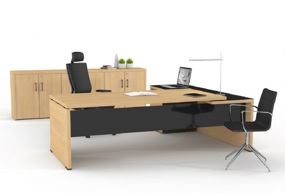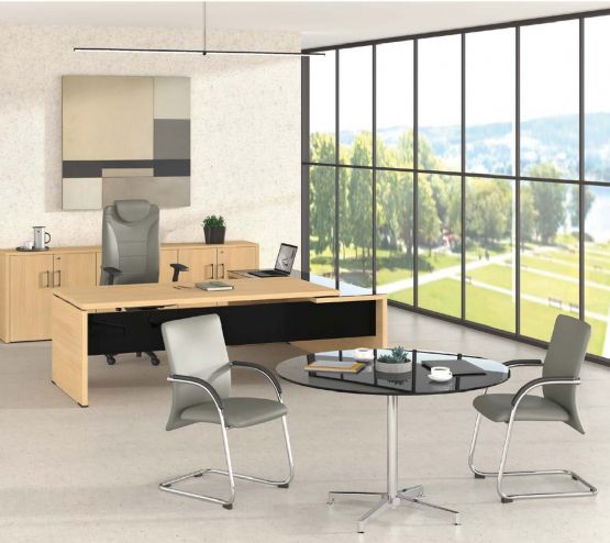 Tavoline e pershtatshme per zyra drejtuese , ngjyre lisi me ballore xham e cila mund te kombinohet nje njejten linje me bibliotekat , komodinen, tavoline mesi , tavoline mbledhje , tapa per kalim kabllo , mbajte hardisku , mbajtes per kembet , mbajtes monitori dhe spirale per kabllo.
