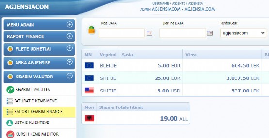 Moduli VALUTA SOFTWARE te Agjensia.com