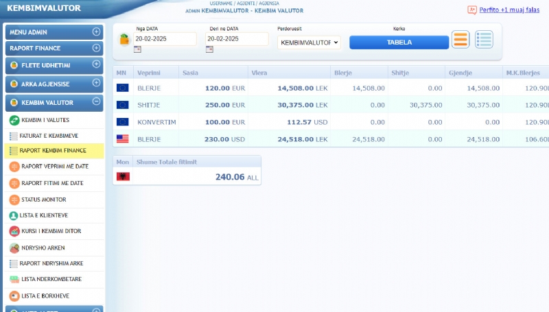 Software per Kembim Valutor Exchange Office - Kembim Valutor programProgrami Exchange Office Këmbim Valutor i ofruar nga Agjensia.com është një zgjidhje gjithëpërfshirëse dhe e avancuar për menaxhimin e veprimtarisë së këmbimit valutor. Me modulin Exchange Office, ky sistem ofron një platformë të plotë për menaxhimin e operacioneve të këmbimit të monedhave, duke përfshirë të gjitha aspektet e procesit të transaksioneve dhe llogaritjes së fitimit për këmbimin valutor.Kontakto +355693127301 ne Whatsapp